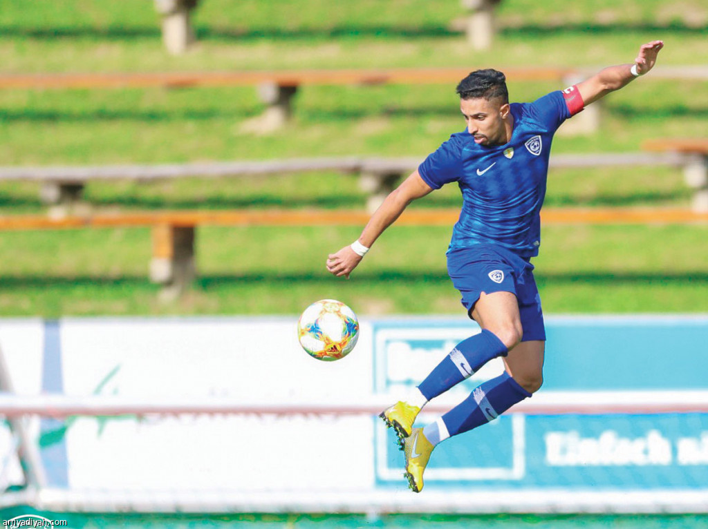 صورة التقطت أمس لسالم الدوسري لاعب الهلال أثناء مشاركته مع فريقه في مباراته أمام رابيد لينز النمساوي (المركز الإعلامي ـ الهلال)
