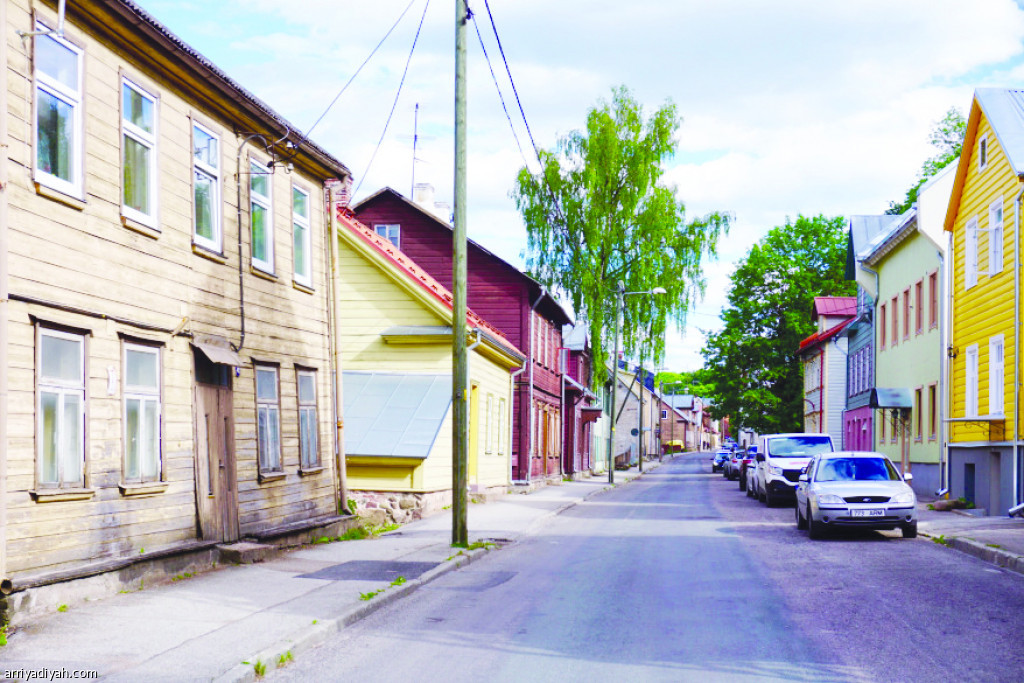 صورة التقطت لشارع في سوبيلين المعروفة بمنازلها ذات الطابق الواحد والطابقين في تارتو بإستونيا (أرشيفية)