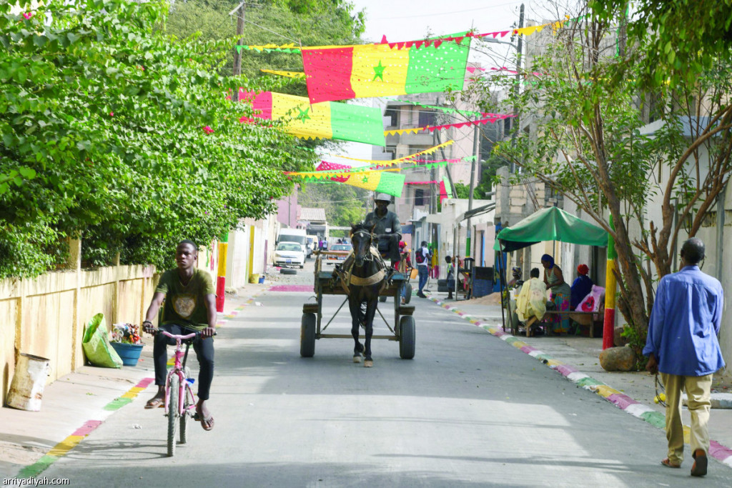 صورة التقطت أمس لأعلام السنغال تغطي أحد شوارع داكار العاصمة السنغالية قبل يوم واحد من موعد مباراة المنتخب أمام الجزائر في نهائي بطولة كأس أمم إفريقيا 2019 (الفرنسية)