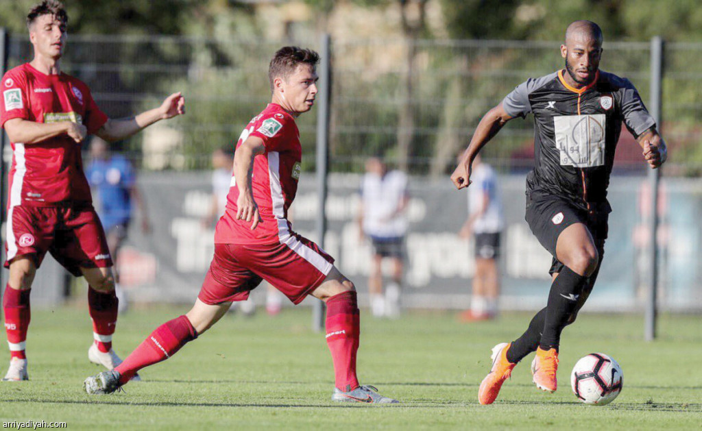 صورة التقطت أمس للبرازيلي سيبا مهاجم فريق الشباب الأول لكرة القدم ينطلق في إحدى الهجمات الشبابية في مواجهة فريق ديسلدورف الألماني التي انتهت بـ3/4 للشباب (المركز الإعلامي ـ الشباب)