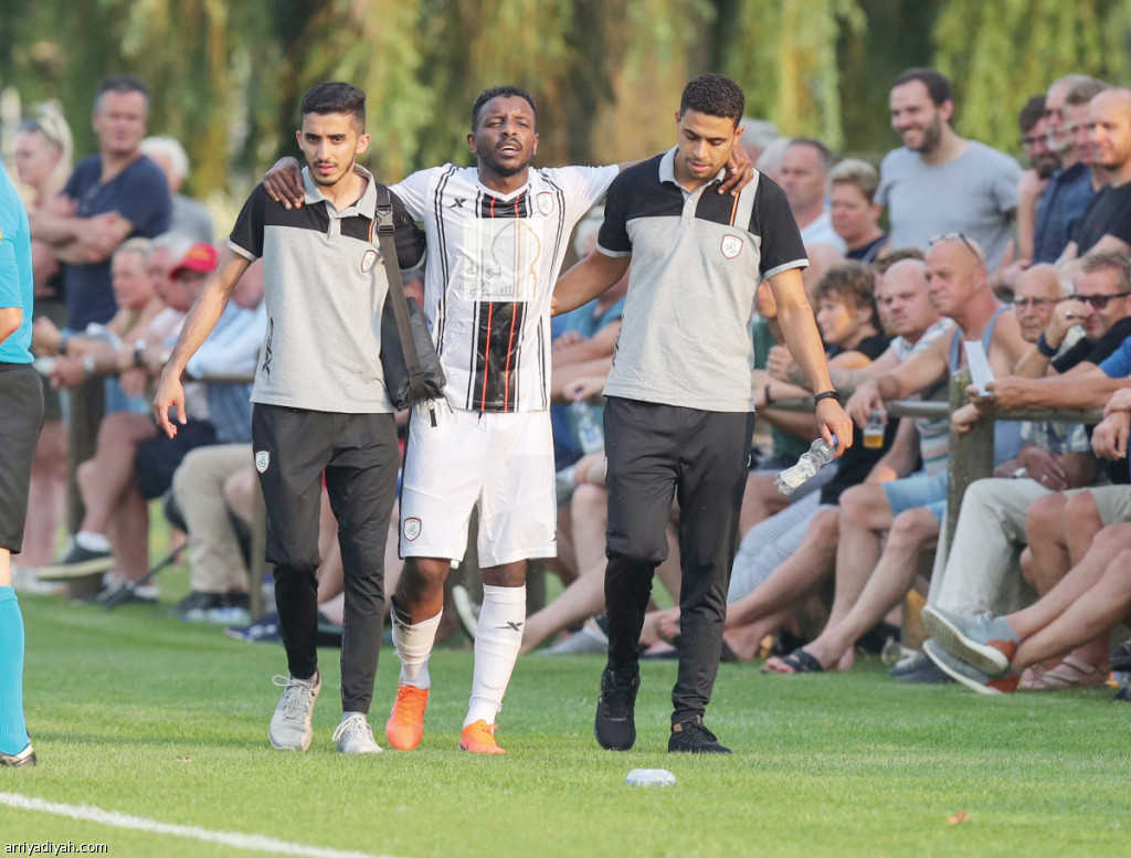 صورة التقطت أمس لفهد غازي مدافع فريق الشباب الأول لكرة القدم بعد خروجه من المباراة التجريبية أمام جواهيد إيجلز التي كسبها الشباب 3ـ2، إذ تعرض لإصابة بعد أن سجل هدف فريقه الأول (المركز الإعلامي ـ الشباب)