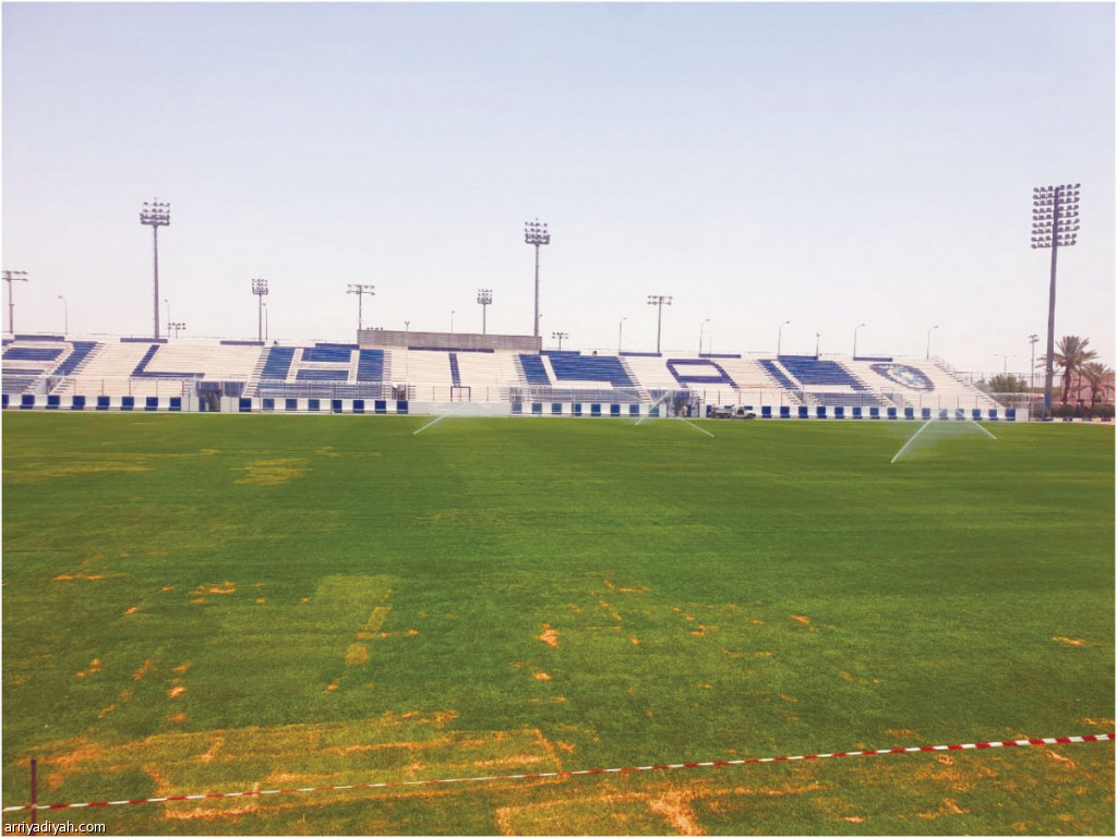 صورة التقطت أمس للملعب الرئيس لنادي الهلال، لذي تمت زراعته الصيفية الجارية على أن يتم الانتهاء من أعمال الصيانة كافة، وسيجري اللاعبون تدريباتهم لمدة أسبوع على الملعب الرديف تصوير: عبدالإله المرحوم