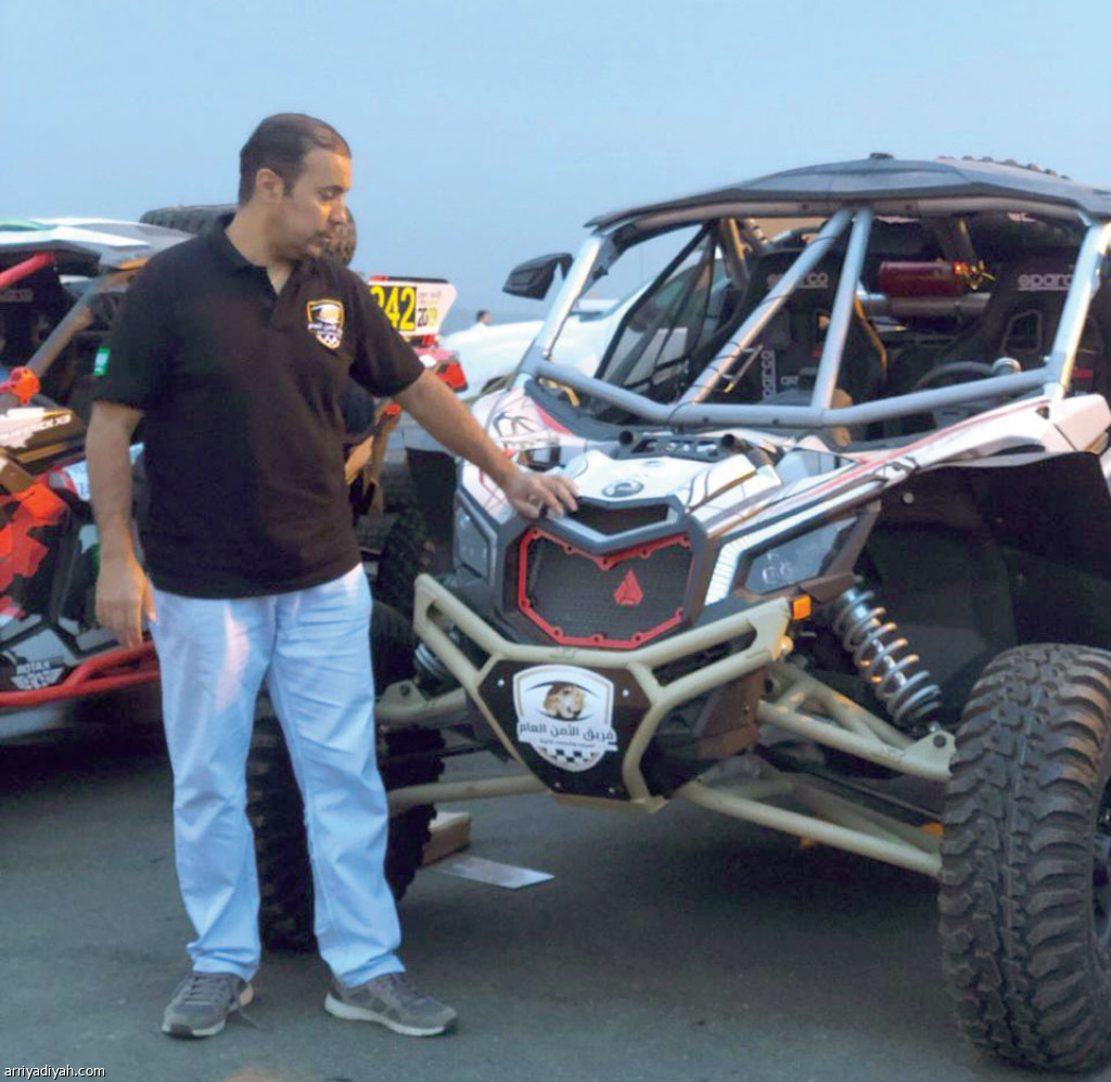 صورة التقطت أمس لشاكر التويجري قائد فريق الأمن العام للسيارات يتفقد إحدى السيارات المشاركة في السباق (الرياضية)