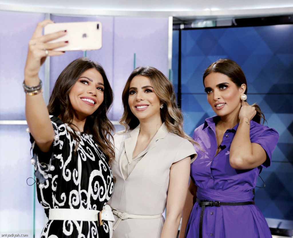 صورة التقطت لولاء الفايق ودانا أشقر والعنود البدر مقدمات برنامج Trending يأخذن سيلفي داخل الاستديو قبل بدء البرنامج الذي يعرض أسبوعيًّا من الأحد إلى الخميس على قناة MBC4 HS تصوير: بشير صالح