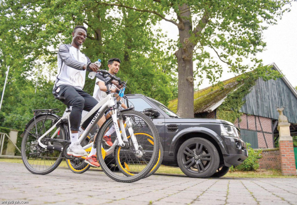 صورة التقطت أمس لحسن معاذ وعبد الملك الشمري لاعبَي فريق الشباب الأول لكرة القدم يتنزهان بالدراجات الهوائية على هامش المعسكر الإعدادي في ألمانيا (المركز الإعلامي ـ الشباب)