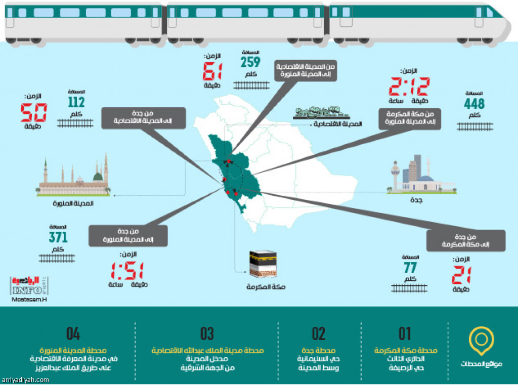 وبحسب الإحصائيات فقد نقل القطار في شهر يوليو الماضي 70.694 راكبًا عبر 220 رحلة بدقة مواعيد تصل إلى 97 في المئة. أما شهر يونيو فبلغ عدد الركاب 94.844 عبر 226 رحلة بدقة مواعيد 96 في المئة. ويعد مشروع قطار الحرمين، أضخم مشاريع السعودية والأكبر على مستوى الشرق الأوسط، في تصاميم محطاته المستلهمة من معالم مكة المكرمة والمدينة المنورة. وإلى جانب التصاميم المبهرة، اختار القائمون على المشروع مواقع مميزة للمحطات، إذ اختير موقع محطة مكة المكرمة في حي الرصيفة بمسافة لا تزيد عن 4 كيلو مترات عن المسجد الحرام.