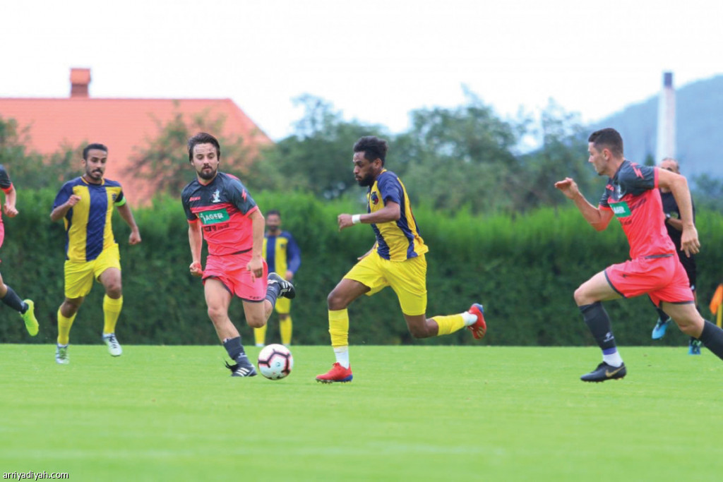 صورة التقطت أمس من مواجهة الحزم أمام نظيره سامبيون سيلجي السلوفيني التجريبية التي انتهت بـ 6ـ1(المركز الإعلامي ـ الحزم)