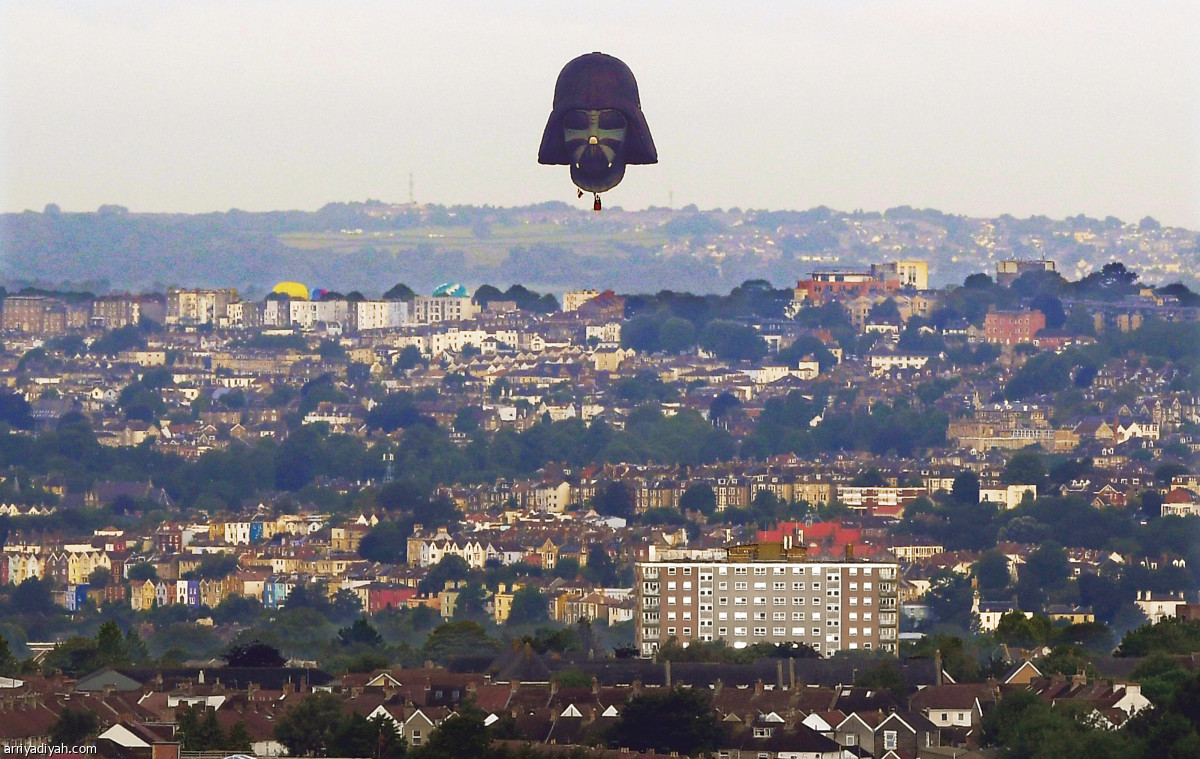 حلق منطاد عملاق على شكل قناع شخصية دارث فيدر، الشرير في سلسلة أفلام “ستار وورز.. حرب النجوم”، فوق ميناء بريستول الإنجليزي مع انطلاق المهرجان السنوي للمناطيد في المدينة. وجاءت مشاركة المنطاد بعد حملة تمويل جماعي شهدت تبرع الزوار بنحو 5255 جنيهًا إسترلينيًا “6383 دولارًا” لظهور المنطاد.