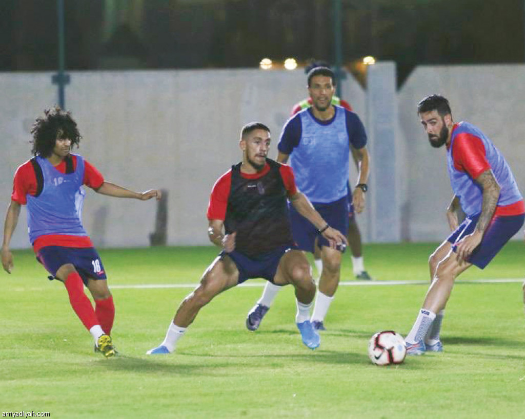 يختتم فريق القادسية الأول لكرة القدم مبارياته التجريبية استعدادًا للموسم الجديد لدوري الأمير محمد بن سلمان لأندية الأولى بمواجهة الرفاع البحريني اليوم على ملعبه، وفي الصورة التي التقطت أمس الفريق أثناء الحصة التدريبية (المركز الإعلامي - القادسية)