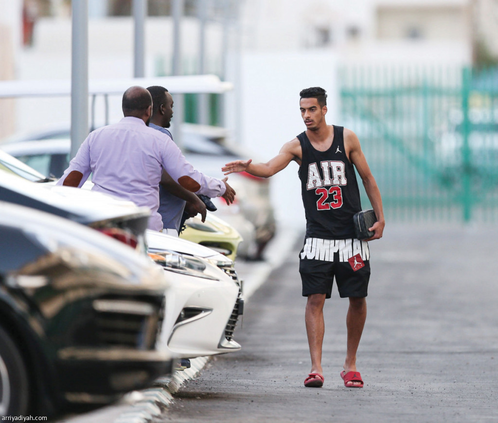صورة التقطت أمس لعلي الأسمري لاعب الأهلي يصافح مستقبليه عند موقف السيارات في مقر النادي قبل بداية التدريبات تصوير: وهبان خبتي