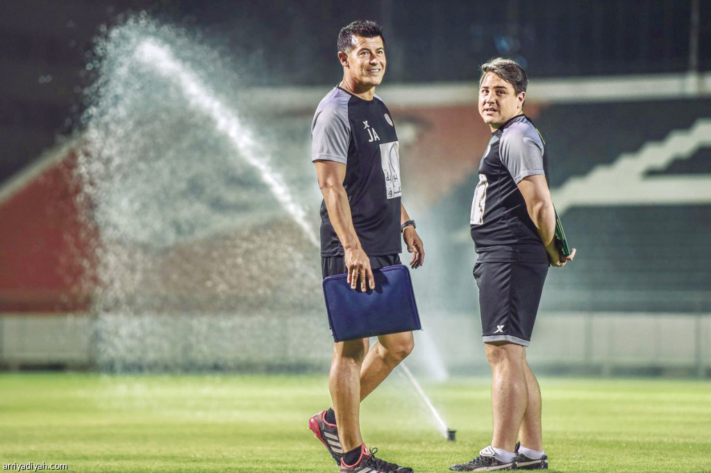 يوظف الأرجنتيني خورخي ألميرون مدرب فريق الشباب الأول لكرة القدم البيانات التي يغذيه بها المكسيكي ميكيل تروش محلل الإحصائيات في رسم خطة الموسم الجديد.. وفي الصورة التي التقطت أمس يتحدث ألميرون مع تروش العضو في جهازه على هامش تدريب الفريق في ملعبه الذي يحتضن اليوم مواجهة تجريبية مع الاتفاق (المركز الإعلامي ـ الشباب)