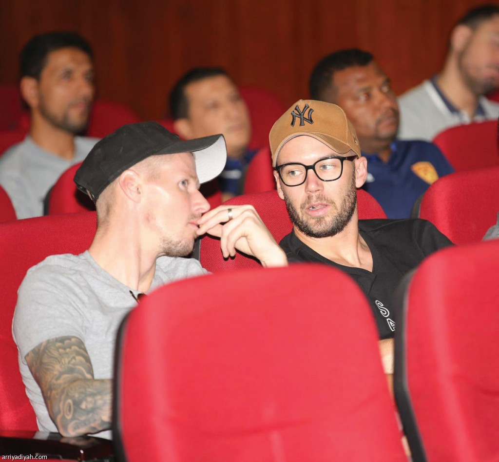 صورة التقطت أمس لجاك دونكان وأندي كيو أثناء المحاضرة (المركز الإعلامي ـ القادسية)