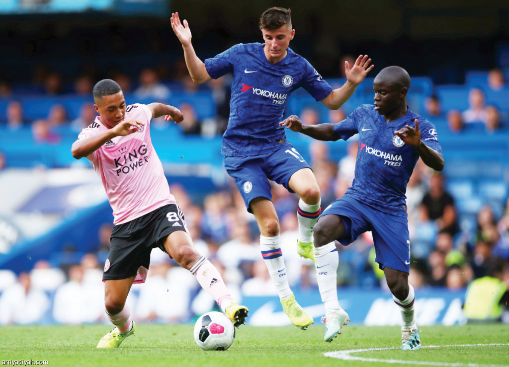 أهدر تشيلسي فرصة تحقيق انتصاره الأول في بطولة الدوري الإنجليزي لكرة القدم الموسم الجاري، بعدما سقط في فخ التعادل "1ـ1" مع ضيفه ليستر سيتي في المرحلة الثانية للمسابقة، وحصد تشيلسي أول نقطة له في البطولة خلال الموسم الجاري فيما نال ليستر النقطة الثانية له.. وفي الصورة التي التقطت أمس يظهر يوري تيليمانس لاعب ليستر سيتي بحوزته الكرة وسط مضايقة نجولو كانتي وميسون ماونت لاعبي تشيلسي (رويترز)