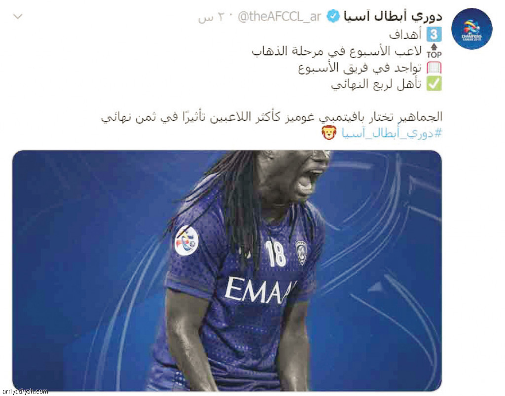 أعلن الحساب الرسمي لدوري أبطال آسيا اختيار الفرنسي بافيتيمبي جوميز، مهاجم فريق الهلال الأول لكرة القدم، أكثر اللاعبين تأثيرًا في الدور ثمن النهائي من البطولة بحسب اختيارات الجماهير.وغرد الحساب الرسمي للبطولة، عبر موقع التواصل الاجتماعي “تويتر”، كاتبًا: “لاعب الأسبوع في مرحلة الذهاب ـ ظهر في فريق الأسبوع ـ تأهل إلى ربع النهائي، الجماهير تختار بافيتيمبي جوميز كأكثر اللاعبين تأثيرًا في ثمن النهائي”.