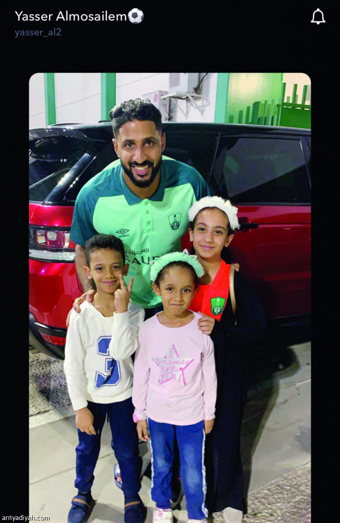 بثَّ ياسر المسيليم، حارس فريق الأهلي الأول لكرة القدم، في حسابه على "سناب شات"، صورة له مع 3 أطفال من مشجعي نادي الأهلي في مقر المعسكر الداخلي للفريق، قبل الانطلاق لملعب مدينة الملك عبد الله الرياضية "الجوهرة المشعة"، لملاقاة العدالة ضمن الجولة الأولى من دوري كأس محمد بن سلمان للمحترفين.