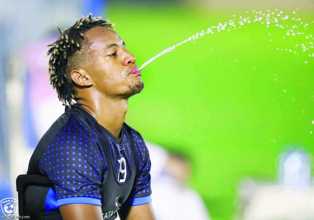 صورة التقطت أمس للبيروفي كاريلو لاعب فريق الهلال الأول لكرة القدم يتلاعب بالماء (المركز الإعلامي ـ الهلال)