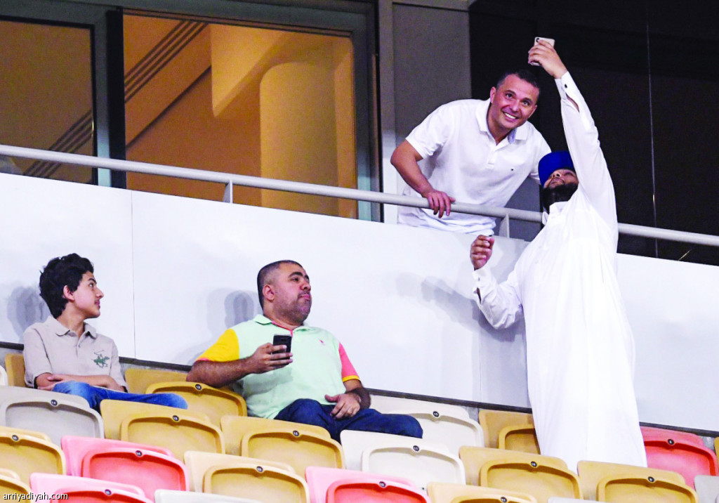 صورة التقطت أمس لكماتشو يلبي رغبة أحد المشجعين بالتصوير معه أثناء مباراة الأهلي والعدالة تصوير: علي خمج