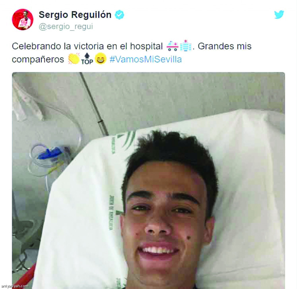ريجيلون نشر عبر حسابه في "تويتر" عقب المباراة صورة له في المستشفى، وكتب: "الاحتفال بالفوز من المستشفى.. عظيم أيها الرفاق".