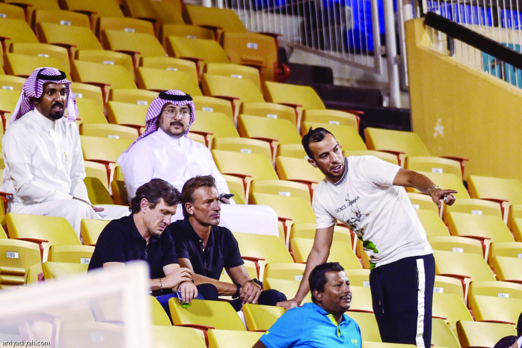 حضر الفرنسي هيرفي رينارد مدرب المنتخب السعودي الأول لكرة القدم، ولورين بوندي مساعده إلى مدرجات ملعب مدينة الأمير عبد الله بن جلوي الرياضية في الأحساء لمتابعة اللاعبين.