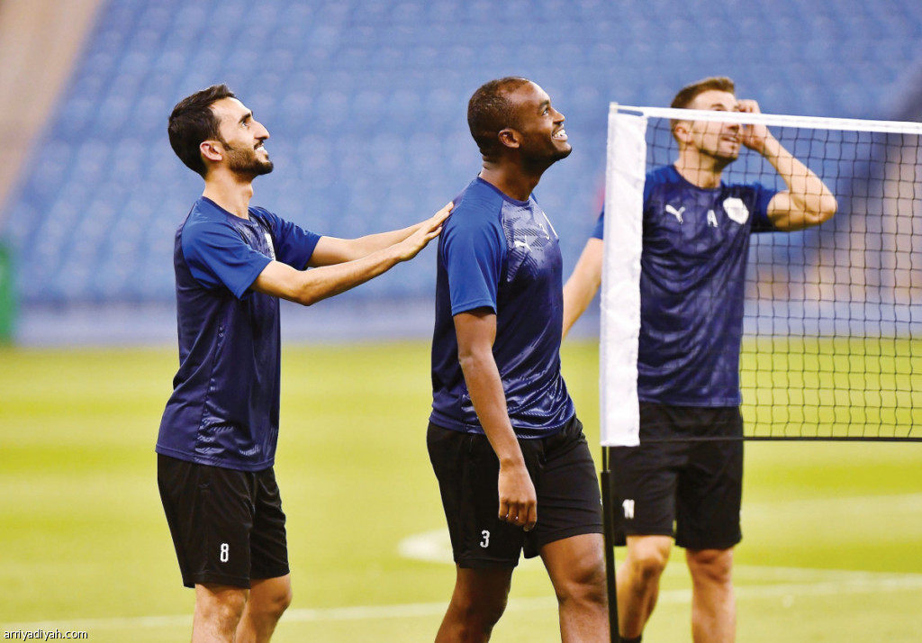 صورة التقطت أمس للثنائي علي أسد وعبد الكريم حسن لاعبَي السد القطري أثناء التدريبات تصوير: يزيد الضويحي
