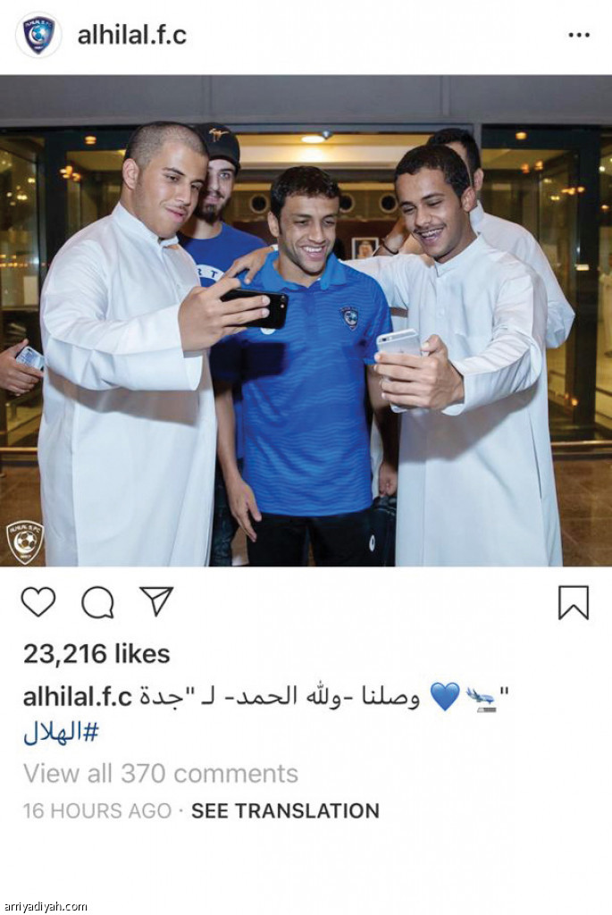 تفاعل أكثر من 23 ألف متابع مع الصورة التي نشرها حساب نادي الهلال الرسمي في "إنستجرام" لمحمد الشلهوب قائد الفريق الأول لكرة القدم وهو يلبي طلبات المعجبين بالتصوير معه، وذلك عقب وصول بعثة الفريق إلى جدة.