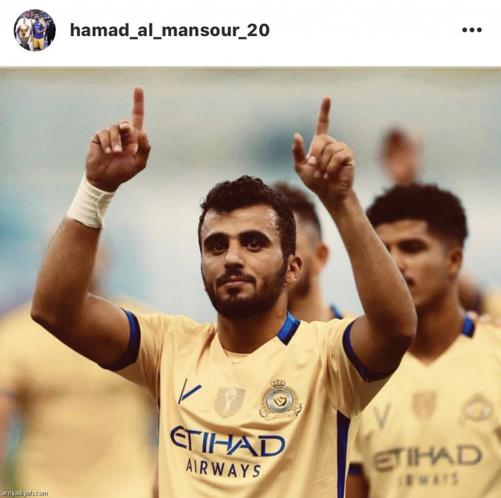 نشر حمد المنصور، لاعب فريق النصر الأول لكرة القدم، صورة له في حسابه على موقع التواصل الاجتماعي "إنستجرام"، من مباراة فريقه أمام السد. وأضاف المنصور تعليقًا على الصورة كاتبًا: "الحمد لله انتهى شوط وباقي شوط أهم، والله يوفقنا إن شاء الله، شكرًا جمهورنا الغالي".