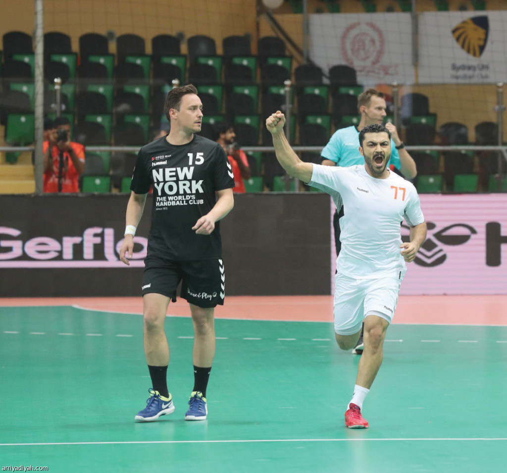 صورة التقطت أمس للعباس لاعب مضر لكرة اليد يحتفل بأحد أهدافه في شباك نيويورك سيتي ضمن بطولة سوبر جلوبتصوير: عيسى الدبيسي
