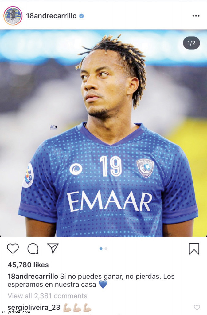وجه البيروفي أندريه كاريلو، لاعب فريق الهلال الأول لكرة القدم، رسالة عبر حسابه الخاص على موقع التواصل الاجتماعي "إنستجرام".