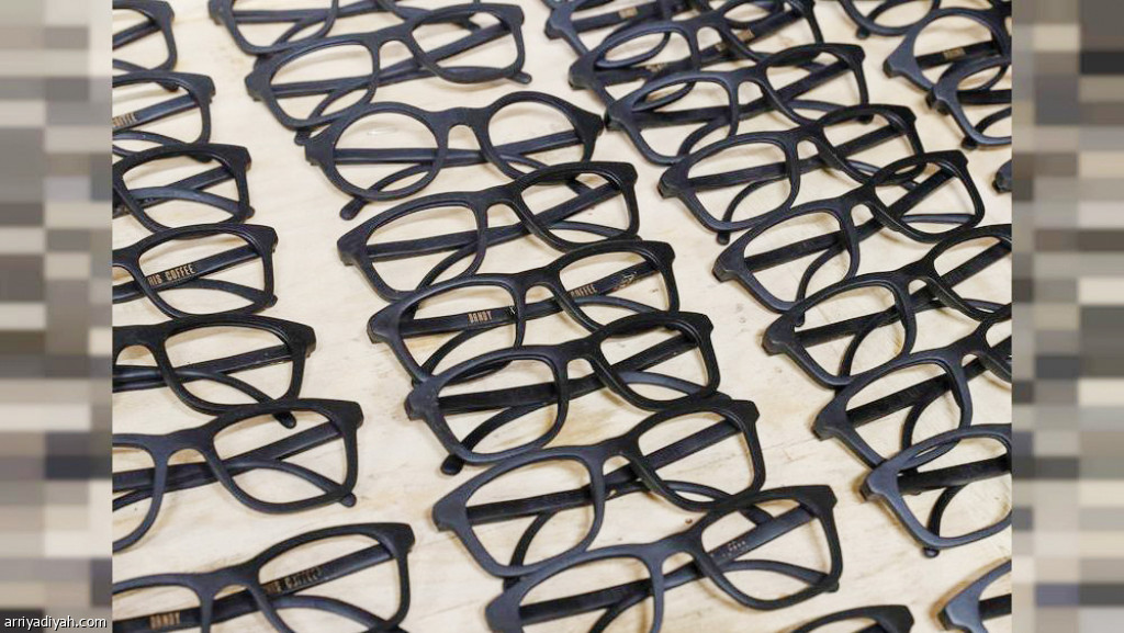 صورة التقطت لإطارات نظارات مصنوعة من رواسب القهوة داخل ورشة قرب كييف في أوكرانيا (رويترز)