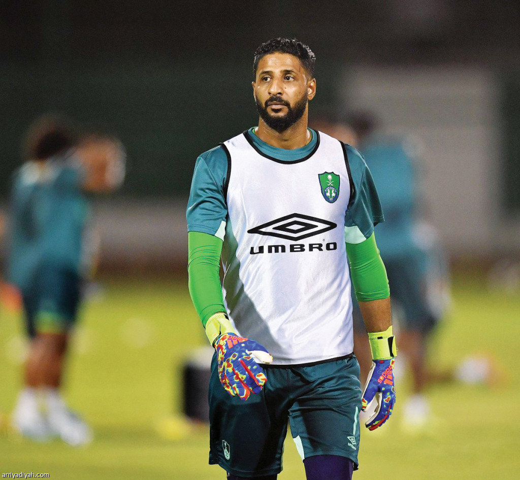 صورة التقطت أمس لياسر المسيليم حارس فريق الأهلي الأول لكرة القدم أثناء التدريبات تحضيرًا لمواجهة الاتفاق بعد غدٍ (المركز الإعلامي ـ الأهلي)