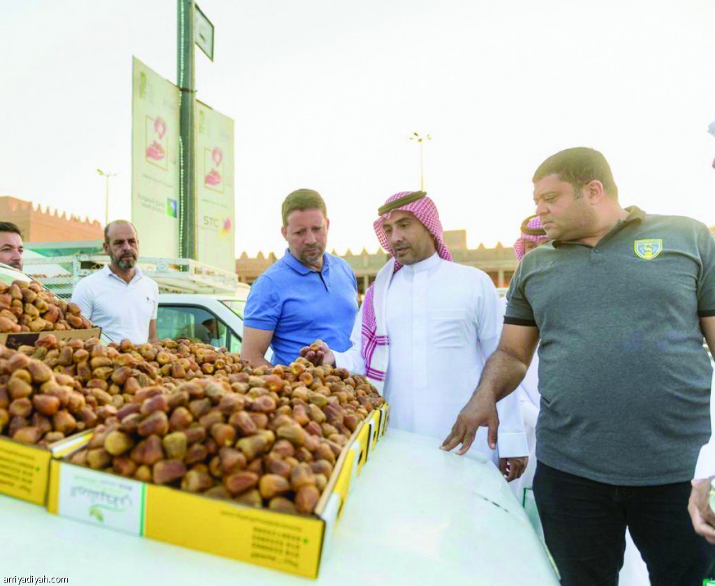 صورة التقطت أمس للبرتغالي سيرجيو مدرب فريق التعاون في سوق التمر في بريدة برفقة مترجم النادي(الرياضية)