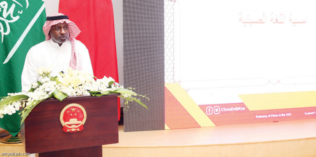 أسطورة الكرة السعودية ماجد عبد الله يتحدث أمس خلال حفل تكريمه في السفارة الصينية بالرياض بمناسبة تدشين تدريس اللغة الصينية في المدارس السعودية والذي أعلنت عنه وزارة التعليم في وقت سابق.