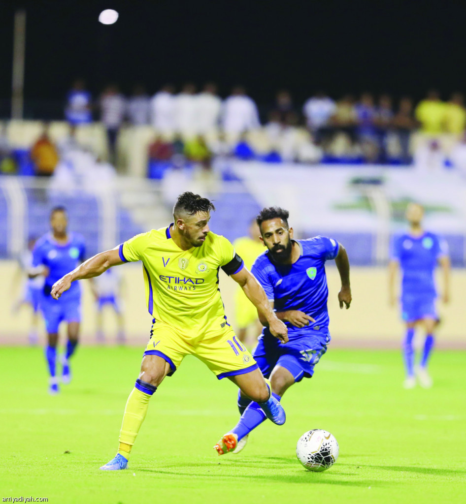 صورة التقطت أمس لجوليانو لاعب فريق النصر يتجاوز بوحميد لاعب الفتح تصوير: عبد العزيز النومان