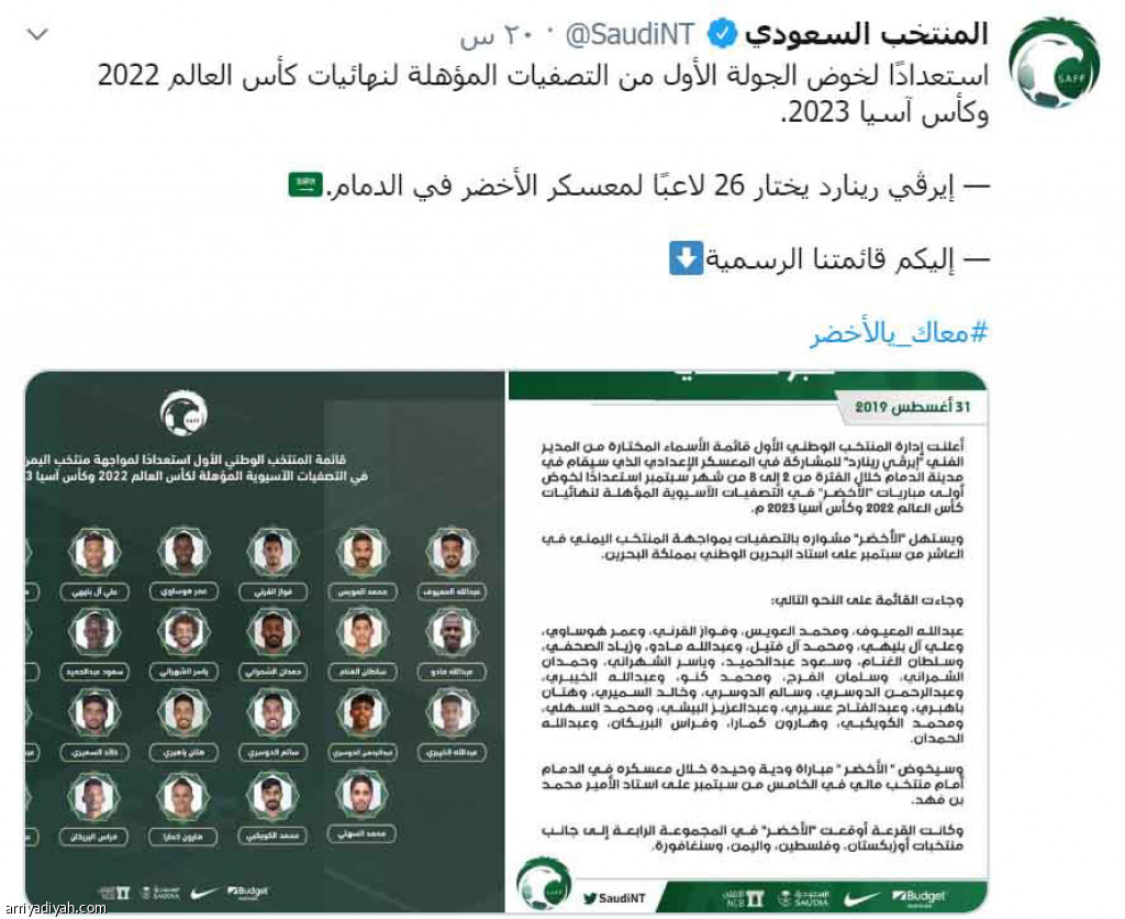 انقسم المغردون في موقع التواصل الاجتماعي "تويتر" من خلال تعليقاتهم بين مؤيد ومستغرب من اختيارات الفرنسي هيرفي رينارد، المدير الفني للمنتخب السعودي الأول لكرة القدم، لقائمة الأخضر استعدادًا للانضمام إلى معسكر الدمام، الذي ينطلق اليوم وحتى الثامن من سبتمبر الجاري.