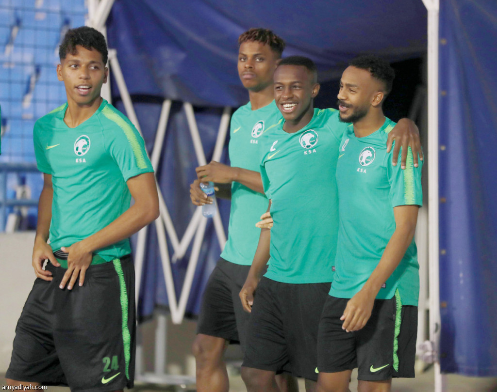 صورة التقطت أمس للرباعي حمدان الشمراني وسعود عبد الحميد وهارون كمارا وعبد الرحمن الدوسري لاعبي المنتخب السعودي الأول لكرة القدم قبل بدء التدريبات ضمن برنامج اليوم الثاني من معسكر المنتخب في الدمام تصوير: عيسى الدبيسي