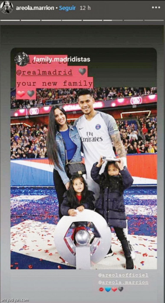 حرصت ماريون أريولا، زوجة ألفونس أريولا، الحارس المنتقل إلى صفوف ريال مدريد، على مشاركة الجماهير الفرحة بالتعاقد معه. ونشرت زوجة الحارس صورًا عدة عبر حسابها الشخصي في موقع "إنستجرام" من إعلان ريال مدريد التعاقد معه، مع كتابة عبارات الفخر والحب عليها.