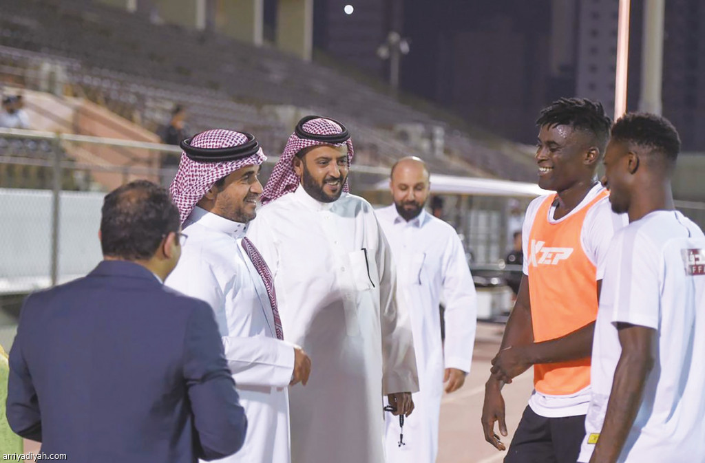 صورة التقطت أمس لخالد البلطان رئيس نادي الشباب في حوار باسم مع السنغالي ألفريد ندياي المحور الجديد للفريق الأول لكرة القدم على هامش الحصة التدريبية استعدادًا لمواجهة النصر الجمعة المقبل ضمن الجولة الثالثة من الدوري (المركز الإعلامي ـ الشباب)