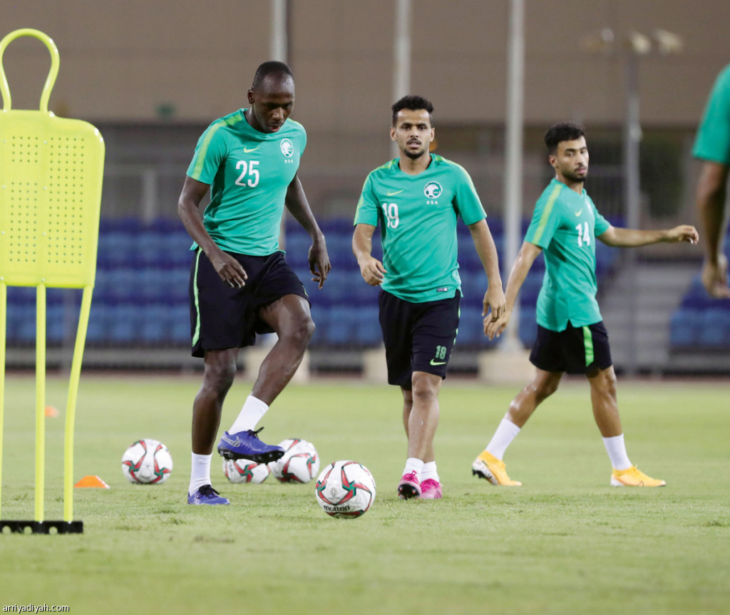 صورة التقطت أمس للثلاثي خالد السميري وعبد الفتاح عسيري وعبد الله مادو لاعبي المنتخب السعودي أثناء التدريبات
