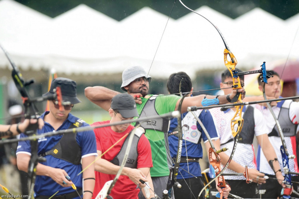 صورة التقطت أمس لابن علي لاعب المنتخب السعـودي للسهام أثناء مشاركته في التدريب الرسمي (المركز الإعلامي ـ اتحاد السهام)