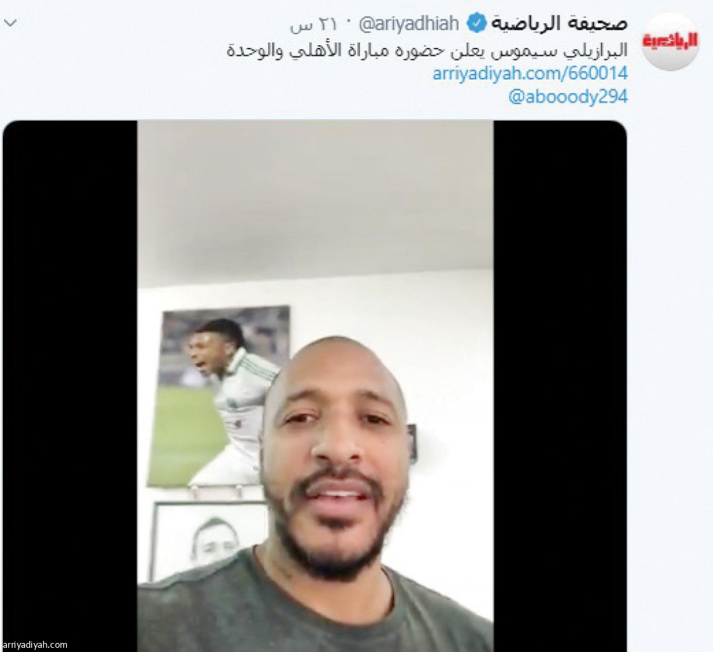 تفاعلت الجماهير الأهلاوية بشكل كبير مع مقطع فيديو، نشرته "الرياضية" للبرازيلي فيكتور سيموس، يؤكد فيه حضوره مباراة الأهلي والوحدة ضمن الجولة الرابعة من دوري كأس محمد بن سلمان للمحترفين لمساندة فريقه السابق.