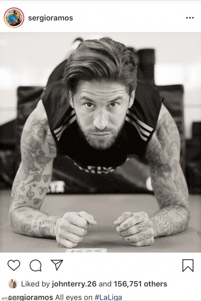 كشف الإسباني سيرجيو راموس، قائد فريق ريال مدريد الإسباني الأول لكرة القدم، عن جاهزيته لخوض مواجهة فريقه في الدوري الإسباني، الذي تلعب مبارياته غدًا وبغد غدٍ، وعلّق البوست الذي نشره في "إنستجرام" بـ "أراكم في الليجا". ونال نحو 156 ألف إعجاب خلال 40 دقيقة.