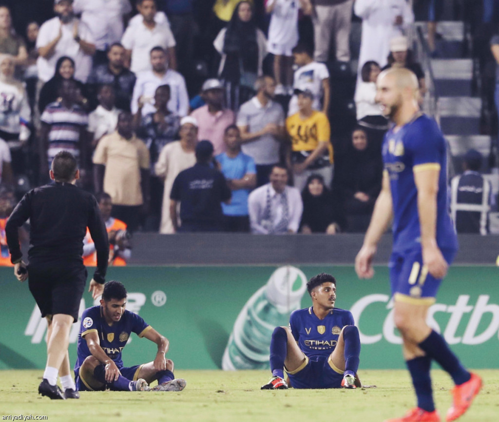 حالة من الإحباط ظهرت على لاعبي النصر.. وفي الصورة التي التقطت أمس يبدو الحزن على لاعبي فريق النصر بعد خسارتهم المباراة من أمام السد القطري وتوديع البطولة الآسيوية