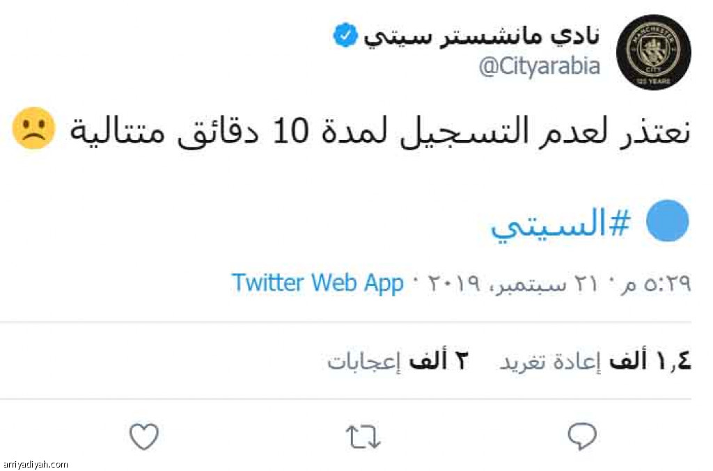 فبعد أن تقدم السيتي بخمسة أهداف في 18 دقيقة فقط، ومضت بعدها عشر دقائق كاملة دون التسجيل، نشر الحساب تغريدة كتب فيها: "نعتذر لعدم التسجيل لمدة 10 دقائق متتالية".