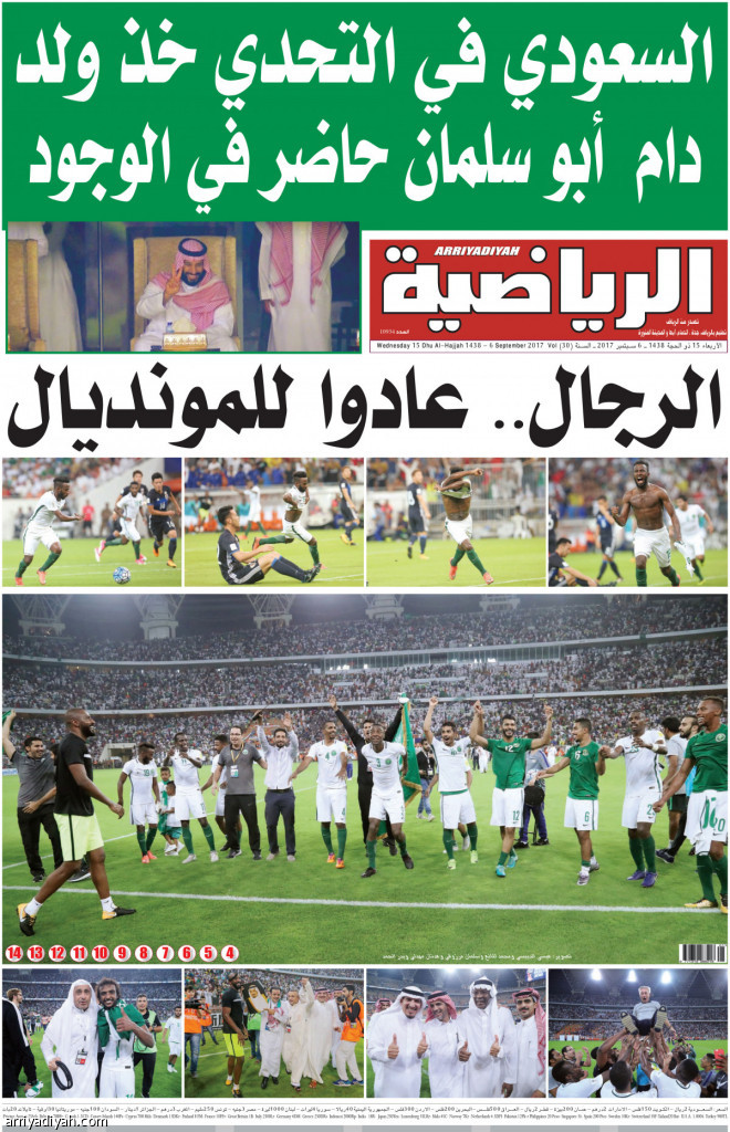 الـ 89، إذ تصدرت الكؤوس التي حصدها المنتخب السعودي الصفحات الأولى للصحيفة في مراحل عدة، ووضعت ما حققه في صدارة اهتماماتها ومتابعاتها.