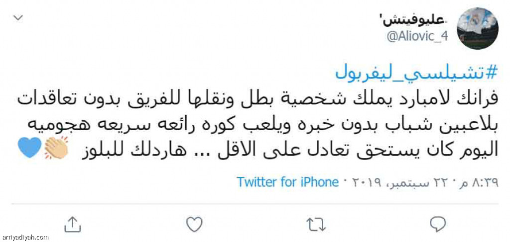 وعلى الجانب الآخر، وعلى الرغم من خسارة تشيلسي، إلا أن جماهير الفريق لا تزال تدعم فرانك لامبارد، المدير الفني الحالي لتشيلسي وأسطورة الفريق، عبر عدة تغريدات نشرتها في تطبيق الطائر الأزرق.