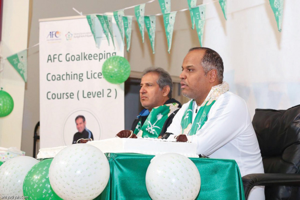 أتم 18 مدرب حراس مرمى سعوديون، في الخبر، دورة المستوى الثاني للرخصة التدريبية الآسيوية للحراس، التي بدأتها اللجنة الفنية في الاتحاد السعودي لكرة القدم في 17 سبتمبر الجاري.. وفي الصورة التي التقطت أمس يتحدث تركي السلطان رئيس اللجنة الفنية إلى المستفيدين من الدورة وبجواره جاسم الحربي المحاضر على المستوى الآسيوي. (المركز الإعلامي ـ اتحاد القدم السعودي)