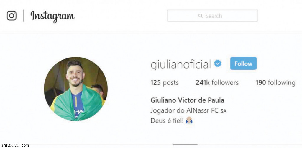 اكتفى البرازيلي جوليانو دي باولا محترف فريق النصر الأول لكرة القدم خلال الشهر الماضي، بنشر تدوينتين فقط على حسابه الرسمي في موقع التواصل الاجتماعي "إنستجرام"، نالتا نحو 56 ألف عملية إعجاب.