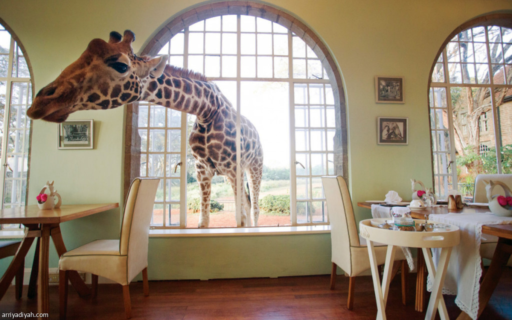 اعتاد نزلاء فندق "جيراف مانور"، أو "مزرعة الزرافة"، في نيروبي، العاصمة الكينية، على مشاركة وجباتهم مع الزرافات.