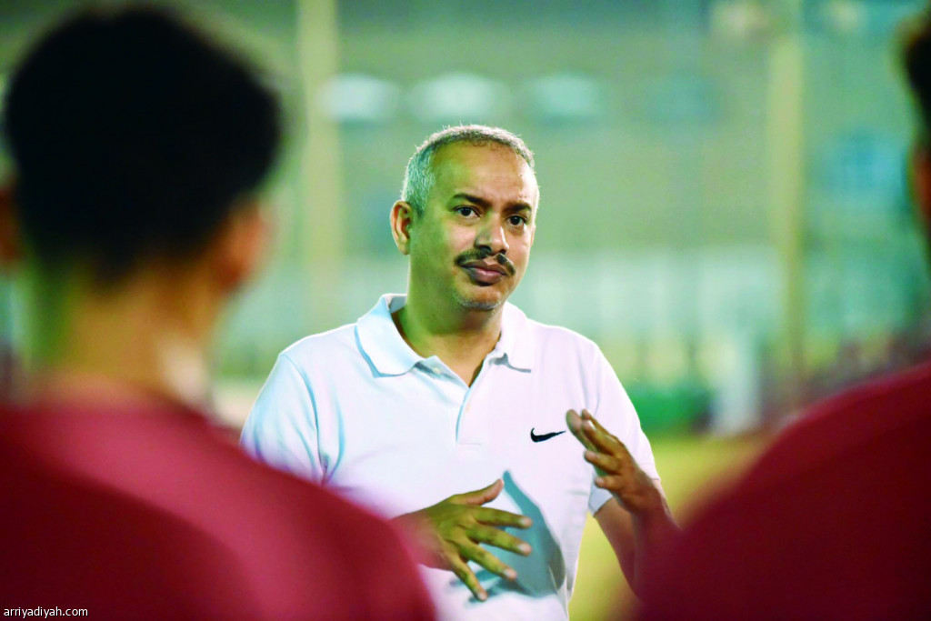 صورة التقطت أمس لأحمد حلوي مدرب حطين المؤقت يتحدث إلى اللاعبين أثناء التدريب الأول (المركز الإعلامي ـ حطين)