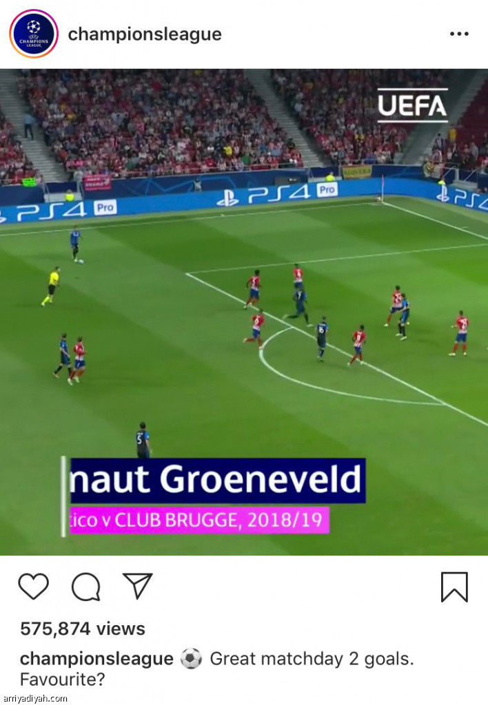 تغنى الحساب الرسمي لدوري أبطال أوروبا عبر منصة التواصل الاجتماعي “إنستجرام”، بأبرز الأهداف التي سجلت في المسابقة الأوروبية الموسم الماضي وكان من ضمنها هدف الأرجنتيني ليونيل ميسي قائد فريق برشلونة الأسباني الأول لكرة القدم ونال الفيديو نحو أكثر من 800 ألف مشاهدة، وأكثر من 700 تعليق ونحو 282 ألف إعجاب.